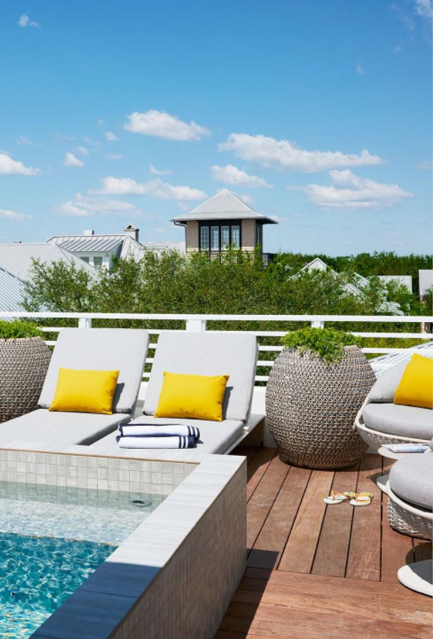 Ce n’est pas parce que vous n’avez pas de jardin que vous ne pouvez pas avoir de piscine. Utilisez votre terrasse pour vous détendre et prendre le soleil au bord de votre piscine. N’oubliez pas non plus que les coussins sont la meilleure façon d’introduire des éclats de couleur.