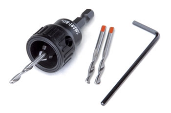 Le SMARTBIT® avec tête fraiseuse à butée d’arrêt et mèches interchangeables : outil précis pour perforer les trous de fixation des lames.